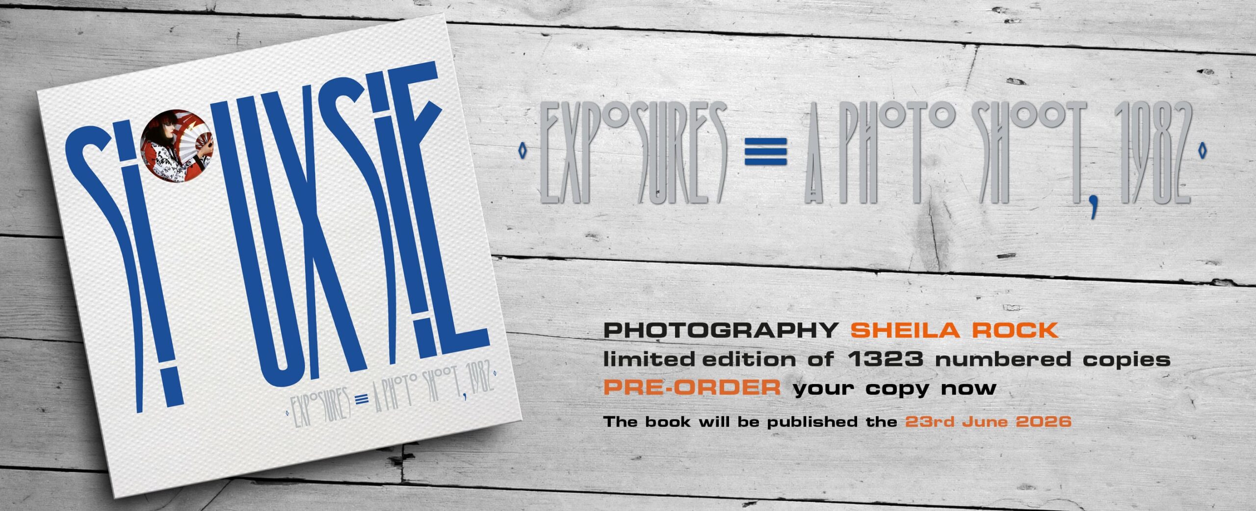 ‘Siouxsie : Exposures – A Photoshoot, 1982’ – with publication set for 23rd June. This stunning collection features 68 images from Sheila Rock‘s legendary shoot for The Face magazine’s February 1982 edition, most of which have not been published before.